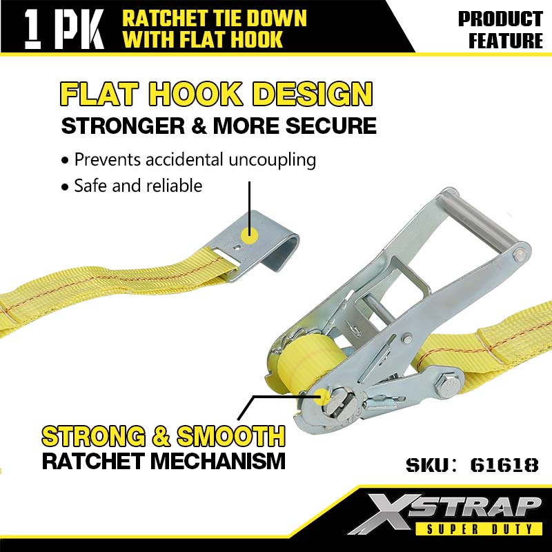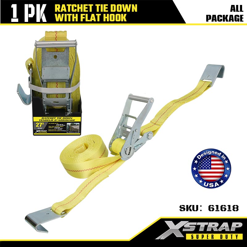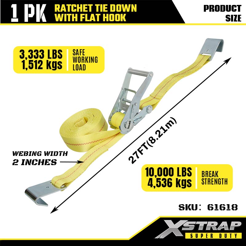 ফ্ল্যাট হুক সহ Xstrap Ratcet টাই ডাউন, 2” x 27’ পলিয়েস্টার টাই ডাউন স্ট্র্যাপ র্যাচেট স্ট্র্যাপ, হেভি ডিউটি ট্রেলারের জন্য ফ্ল্যাট হুক সহ 3333lbs ক্যাপাসিটি কার্গো ল্যাশিং সিকিউরিং স্ট্র্যাপ, ফ্ল্যাট বেড ট্রেলার স্কি বোট, ছোট গাড়ি, ছোট গাড়ি।